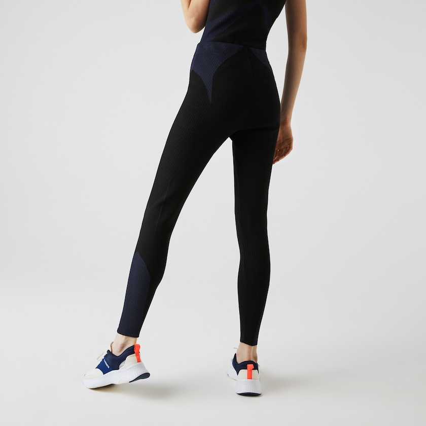 Calças Pretas Azul Marinho Azuis Feminino Lacoste SPORT Ergonomic Knit Leggings OC1-82218U0