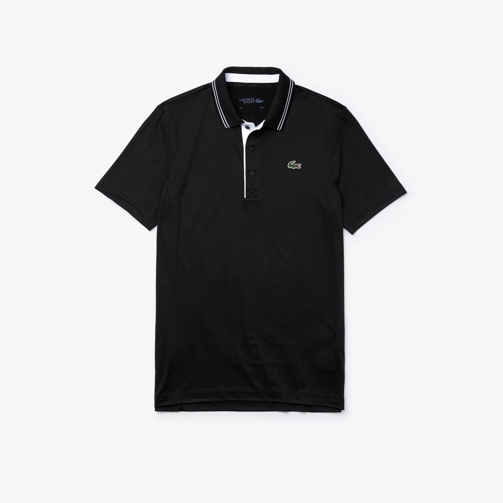 Camisa Polo Pretas Branco Masculino Lacoste SPORT Signature Breathable Golf BX4-07650G1