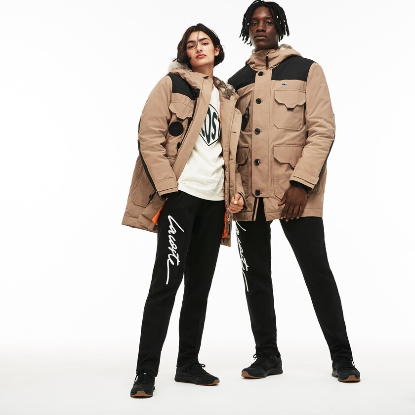 Jaquetas Parka Bege Pretas Masculino Lacoste LIVE Water-Resistant Canvas Quilted VM0-80468Y6