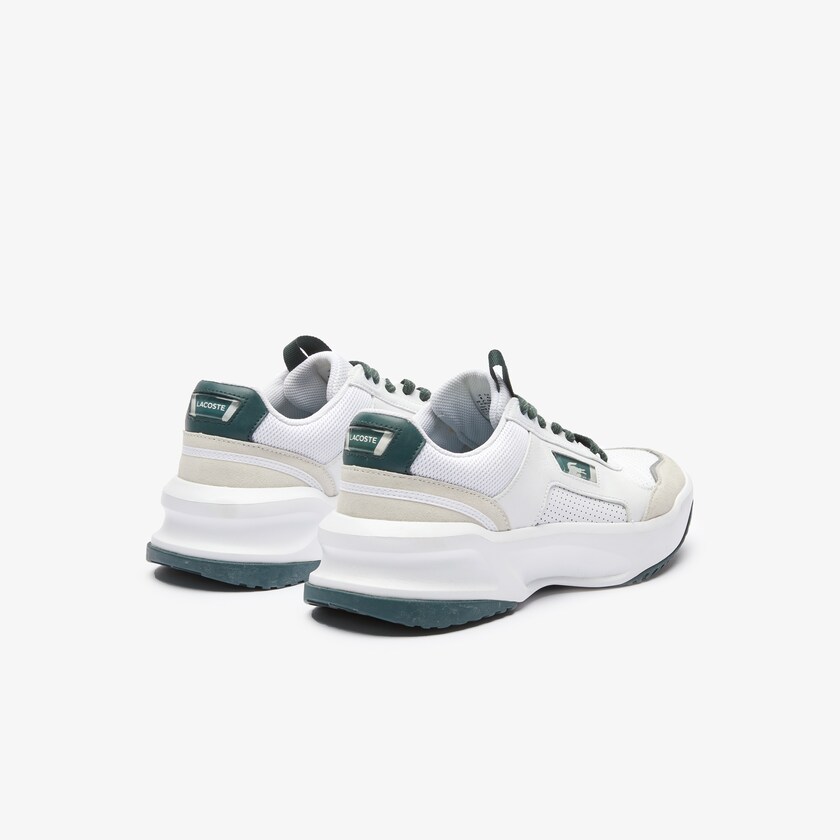 Inspired by Lacoste's heritage G80 design, the Ace Lift updates an archive style with modern reflective detailing. Soft nappa leather uppers are accented by net-influenced perforated panels and suede hits, while a lightweight sculpted outsole adds height. A contemporary edge is infused through the striking reflective element on the toe. To finish, the quarters are decorated with lines that echo the tennis court and stylishly frame the G80-inspired crocodile branding.