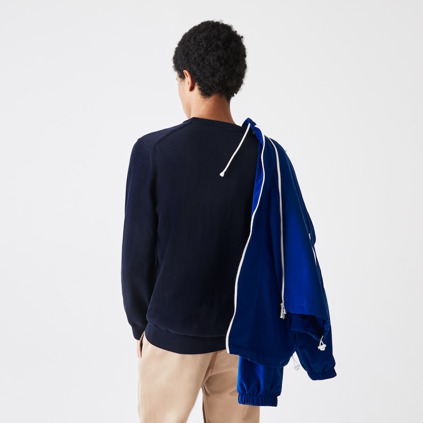 Suéteres Azul Marinho Azuis Masculino Lacoste Organic Cotton Crew Neck YA0-23542I1