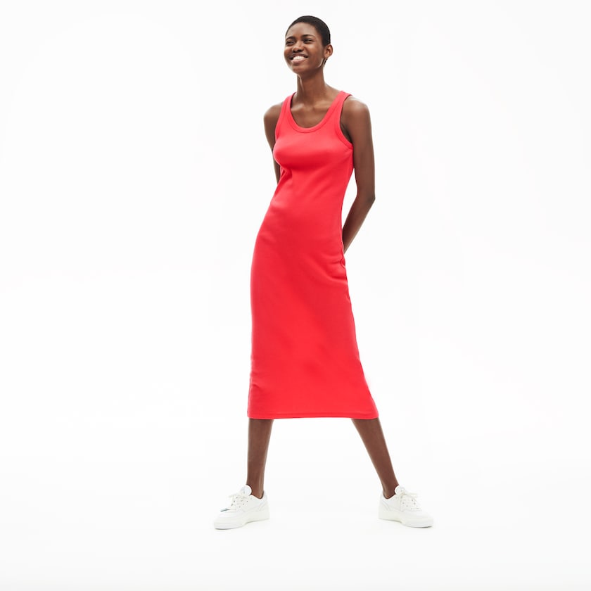 Feminine and casual, this ribbed shirtdress sculpts a slim-fitting silhouette with a scooped neck and a longline hem. It’s as comfortable as it is easygoing in soft cotton.
